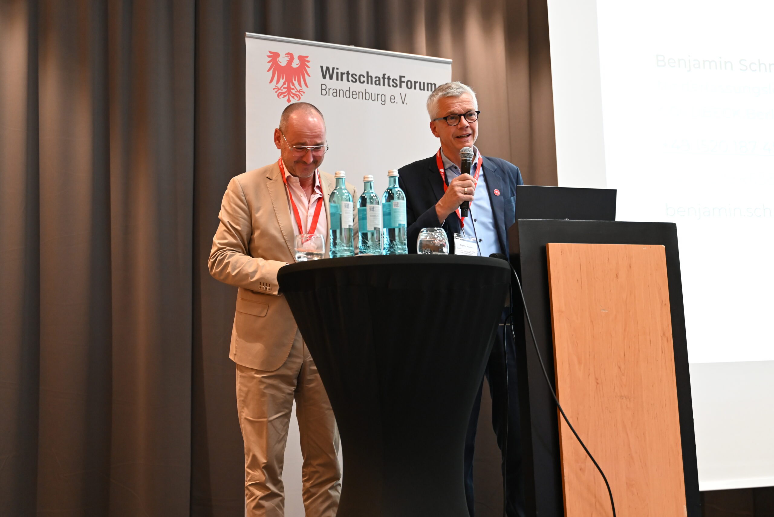 Im Anschluss sprach Ulrich Scheppan, Vorstandsvorsitzender der Investitionsbank des Landes Brandenburg, über aktuelle Fördermöglichkeiten und Perspektiven, die Brandenburg als Wirtschaftsstandort stärken.