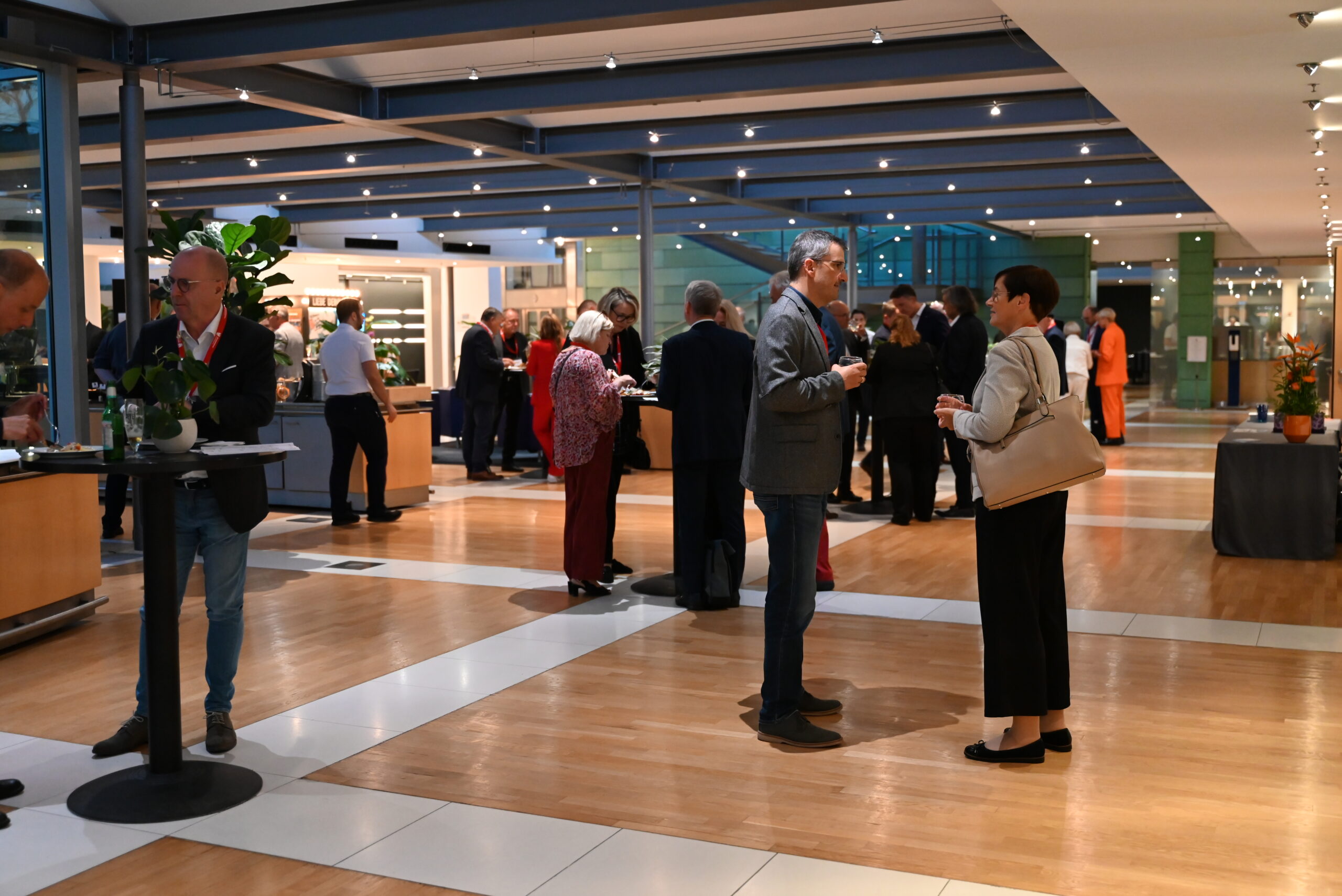 Beim anschließenden Buffet bot sich allen Teilnehmenden die Möglichkeit, die Vorträge in persönlichen Gesprächen zu vertiefen und Kontakte zu knüpfen. Der intensive Austausch bestätigte einmal mehr die zentrale Rolle des WirtschaftsForums als Plattform für Dialog und Vernetzung in Brandenburg.